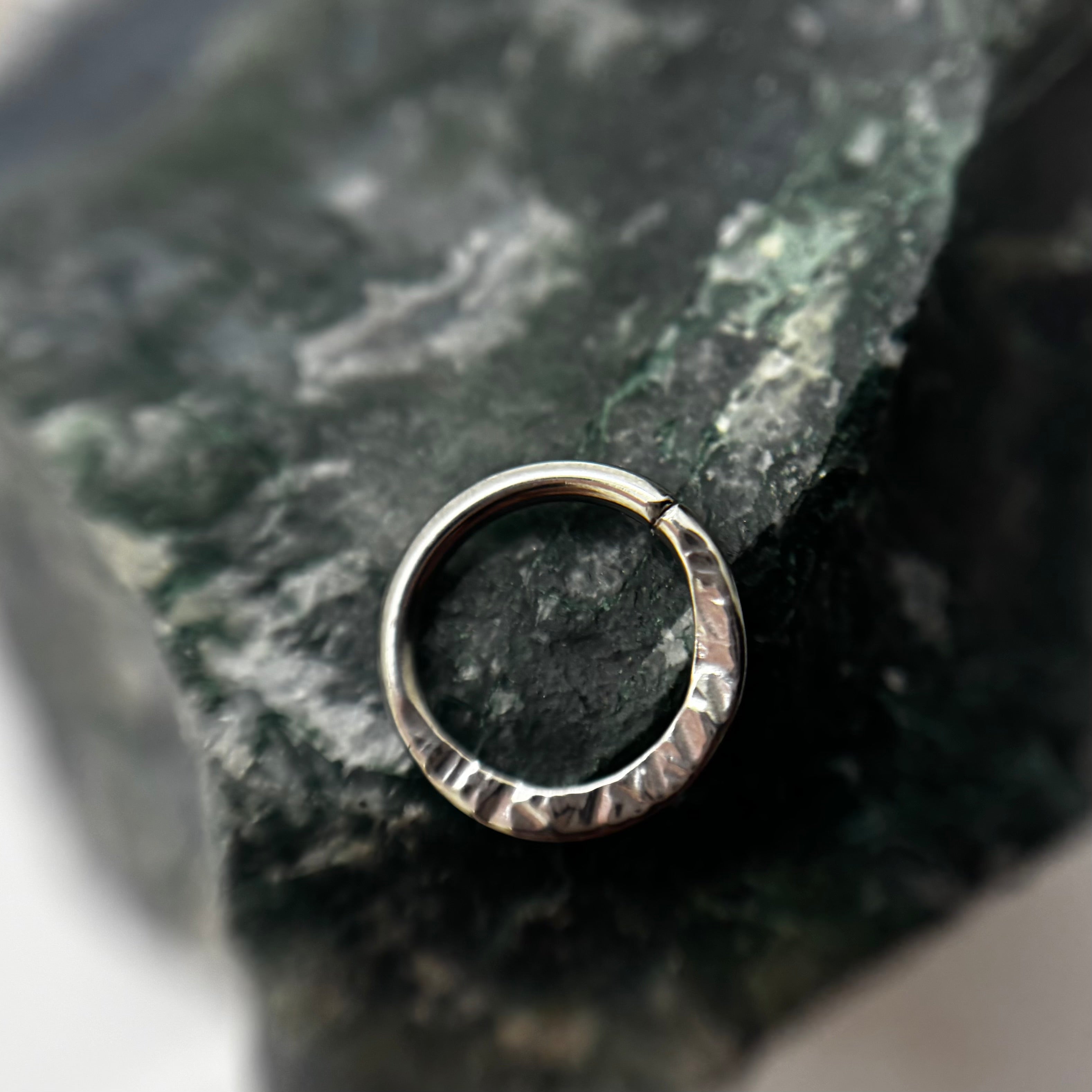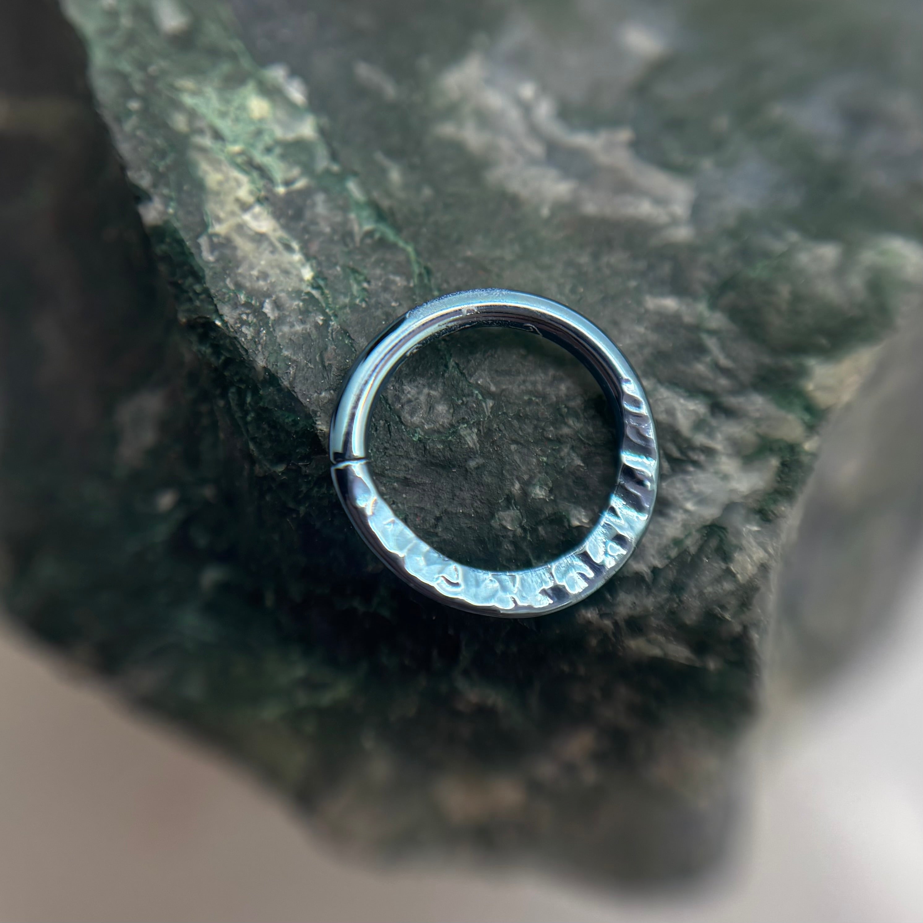These stunning textured niobium seam rings are the perfect blend of durability and style. With a size of 16g and a 5/16" (8mm) diameter, they’re ideal for daith and helix piercings, and can work beautifully for some septum piercings—though we always recommend a size check with your professional piercer before committing.