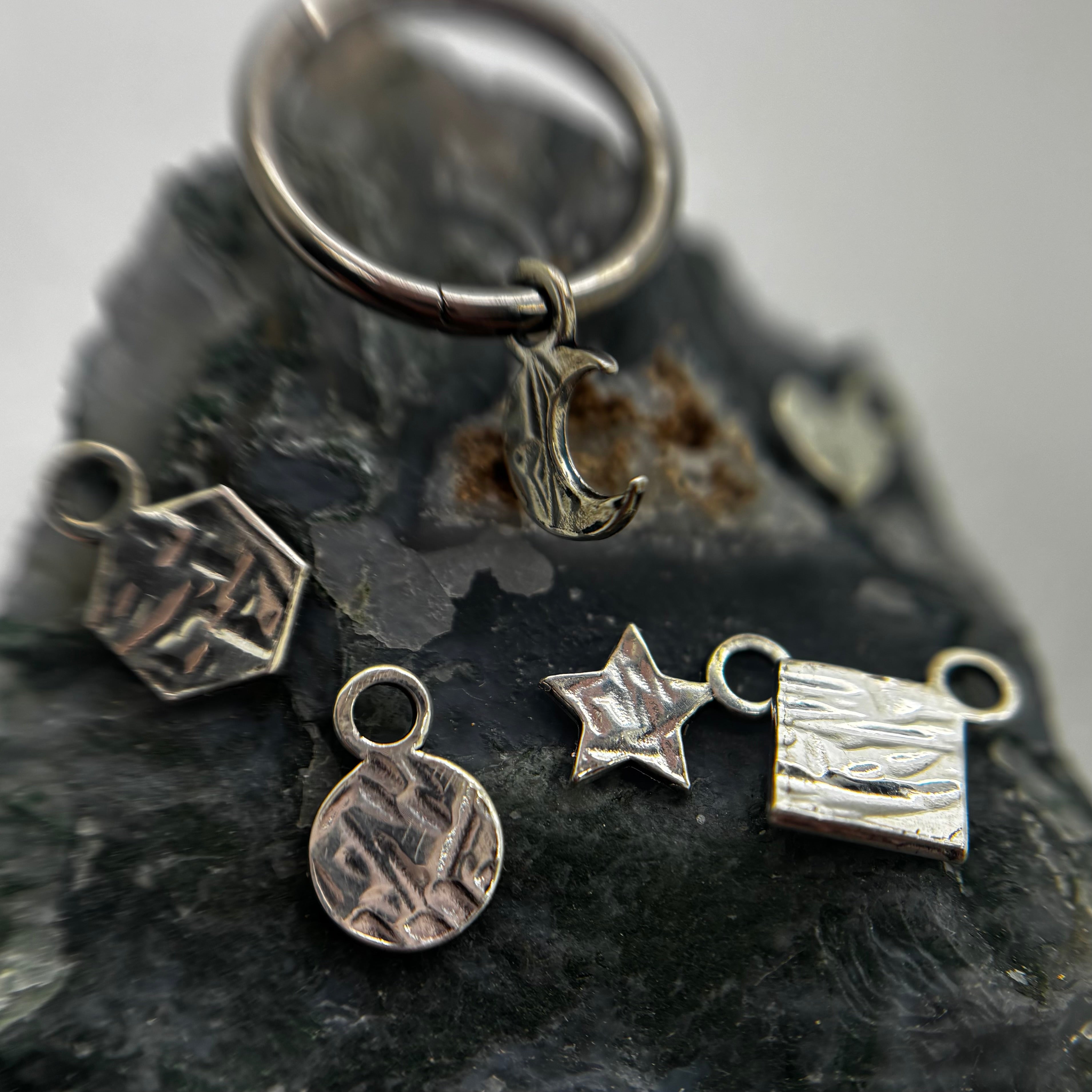 Add a touch of charm to your piercings with our exciting new textured silver charms—beautiful, affordable, and designed to elevate your look! 🌟